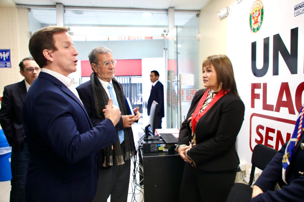 Al cumplirse nueve meses de funcionamiento de la Unidad de Flagrancia de Lima Centro, la presidenta de la Corte de Lima, María Vidal La Rosa Sánchez junto al alcalde de Magdalena del Mar, Francis Allison Oyague y al Presidente de la Cámara de Comercio de Lima (CCL), Roberto De La Torre Aguayo, realizó un recorrido por las instalaciones de esta sede penal.
