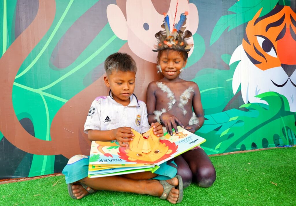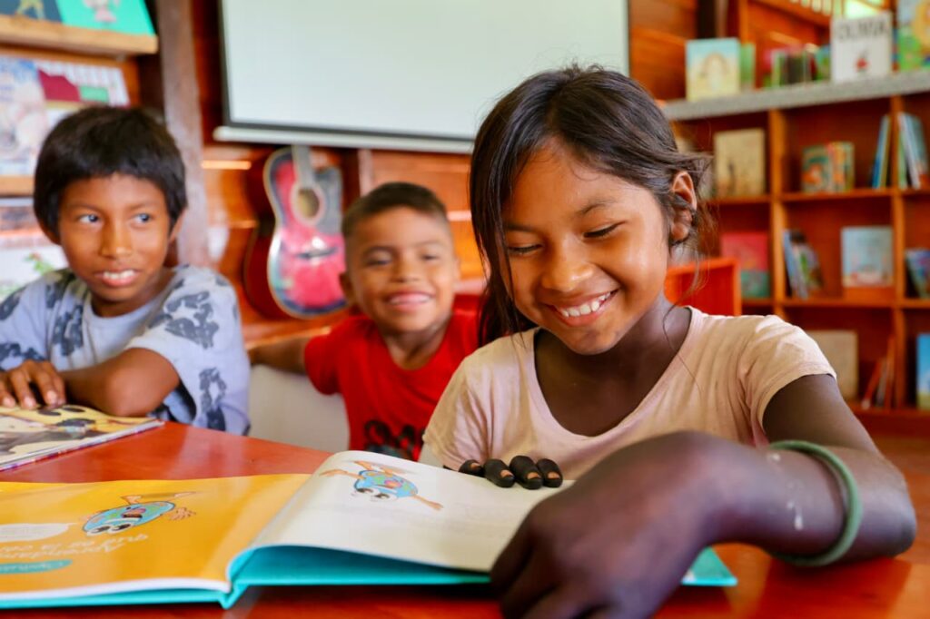 El espacio es una moderna maloca –construida en conjunto con la propia comunidad– que cuenta con libros en lenguas originarias para todas las edades, mobiliario con luces led, wifi, espacio multimedia, computadoras, audiolibros y hasta enfriadores de aire, en una zona donde subsiste la carencia de servicios básicos y la conectividad a internet es precaria.