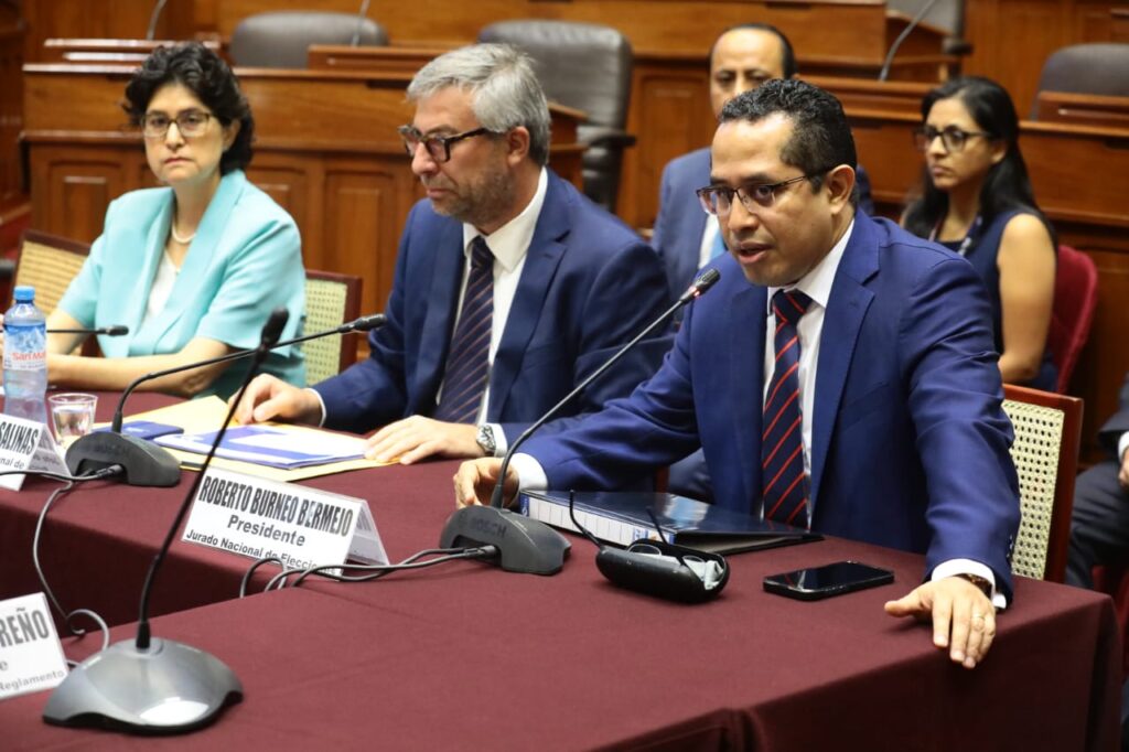 Previamente, la comisión de Constitución y Reglamento recibió al presidente del Jurado Nacional de Elecciones, Roberto Burneo; el jefe de la ONPE, Piero Corvetto y la jefa del Registro Nacional de Identificación y Estado Civil, Carmen Velarde, quienes expusieron los avances de la gestión y organización de las elecciones Generales 2026.