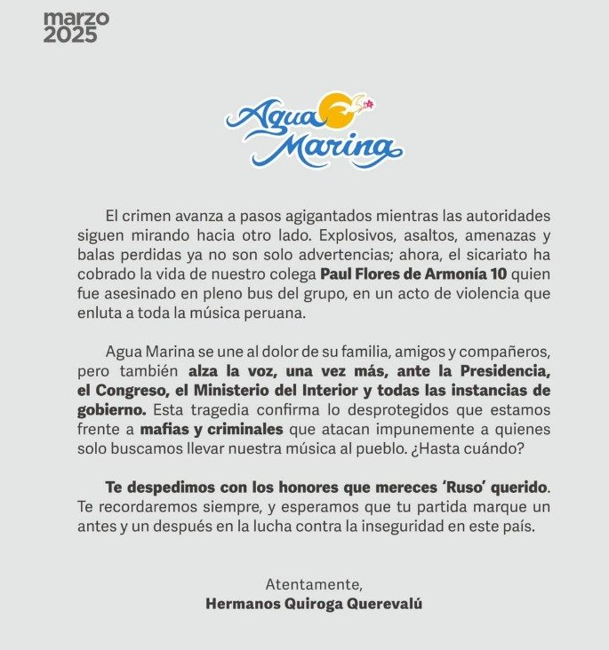 La lamentable noticia hizo que los diferentes grupos de cumbia peruanos expresaran su rechazo frente a la ola delictiva y sicariato que vive el Perú.