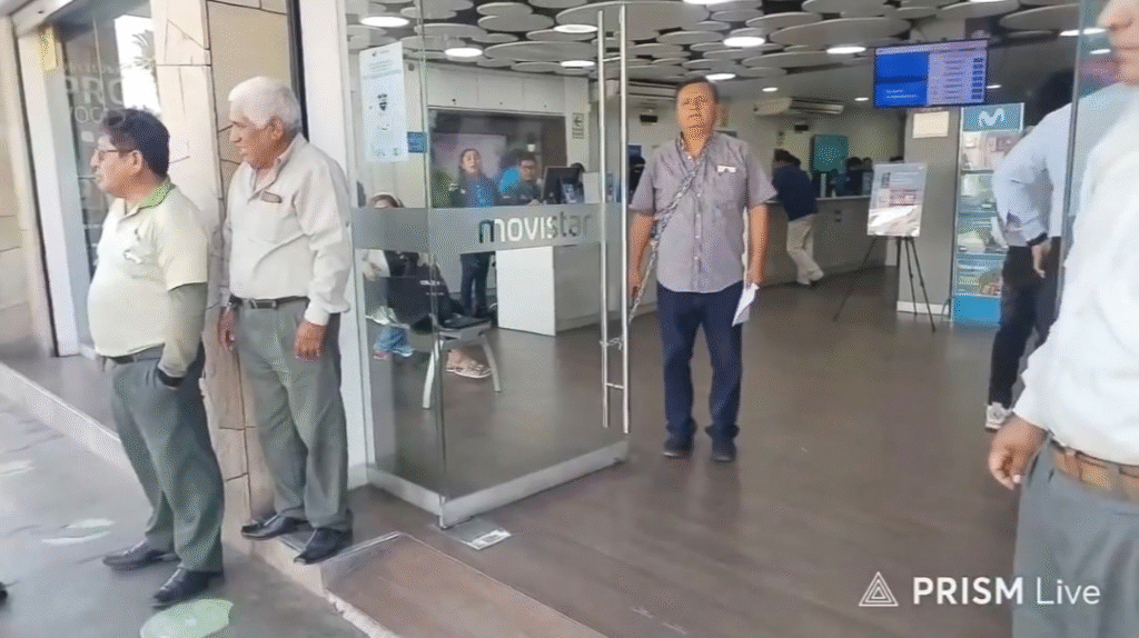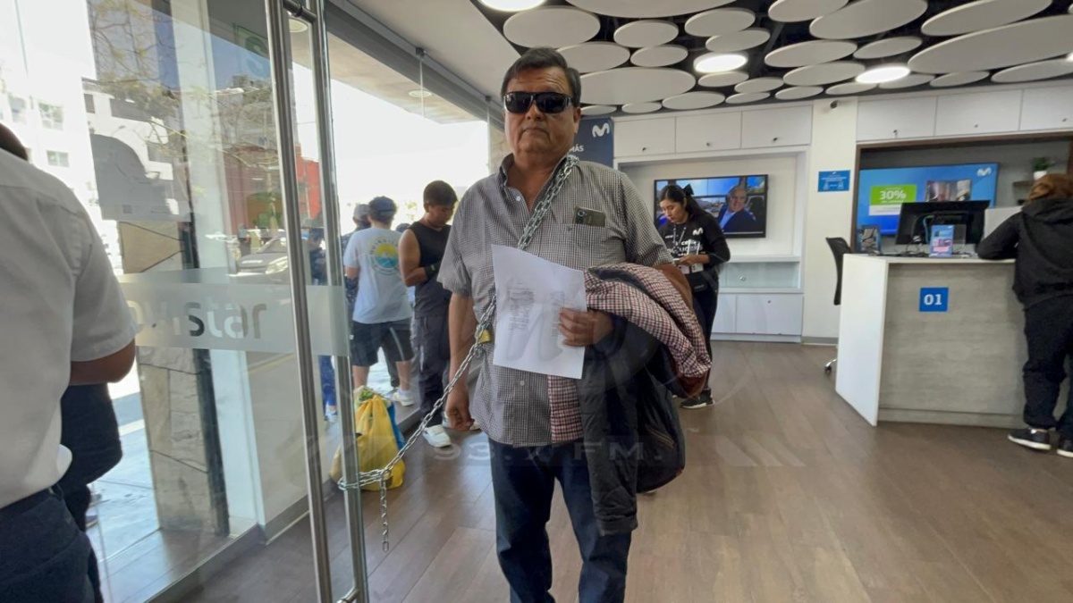 Al grado de la desesperación llegó un empresario tacneño que se encadenó en la puerta de ingreso de una de las oficinas de Movistar en la ciudad fronteriza. “Necesito que repongan mi línea nada más”, dijo.