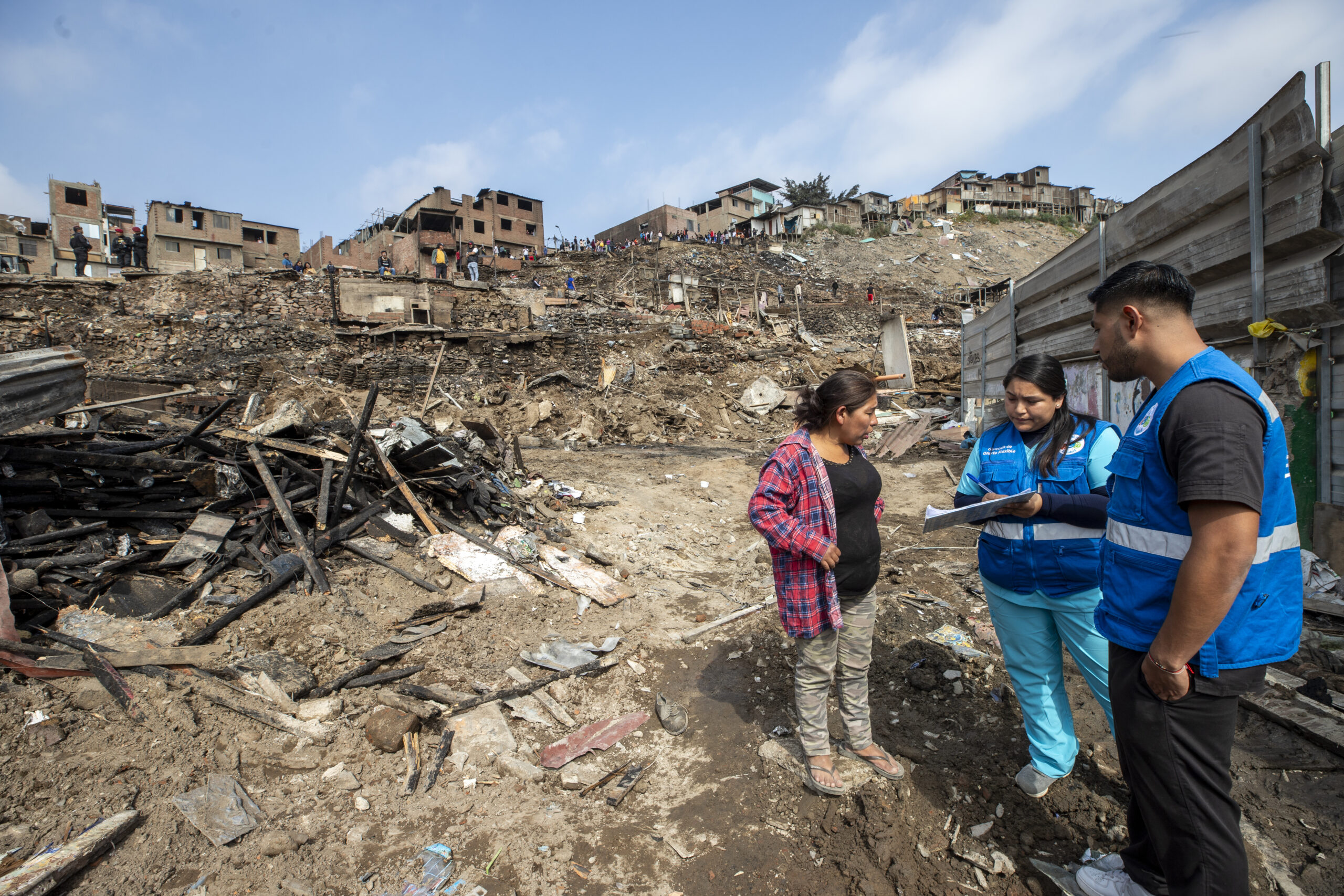 Entre los restos calcinados y el llanto de quienes lo perdieron todo, personal médico y paramédico del Hospital Perú de EsSalud llegó hasta Pamplona Alta pata atender a los damnificados.