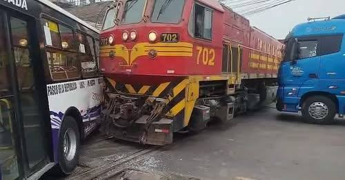Un tren del Ferrocarril Trasandino chocó esta mañana contra un bus de la antigua Línea 10A y un pequeño auto modelo Tico, el acidente ocurrió en el cruce de las avenidas Ferrocarril con Rivaguero, en el distrito de El Agustino.