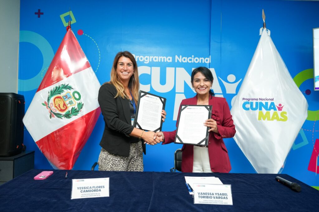 El acto protocolar de la suscripción del convenio estuvo a cargo de Vanessa Toribio Vargas, directora ejecutiva del Programa Nacional Cuna Más del Midis, y Yessica Flores Camborda, representante de la Asociación Kantaya.