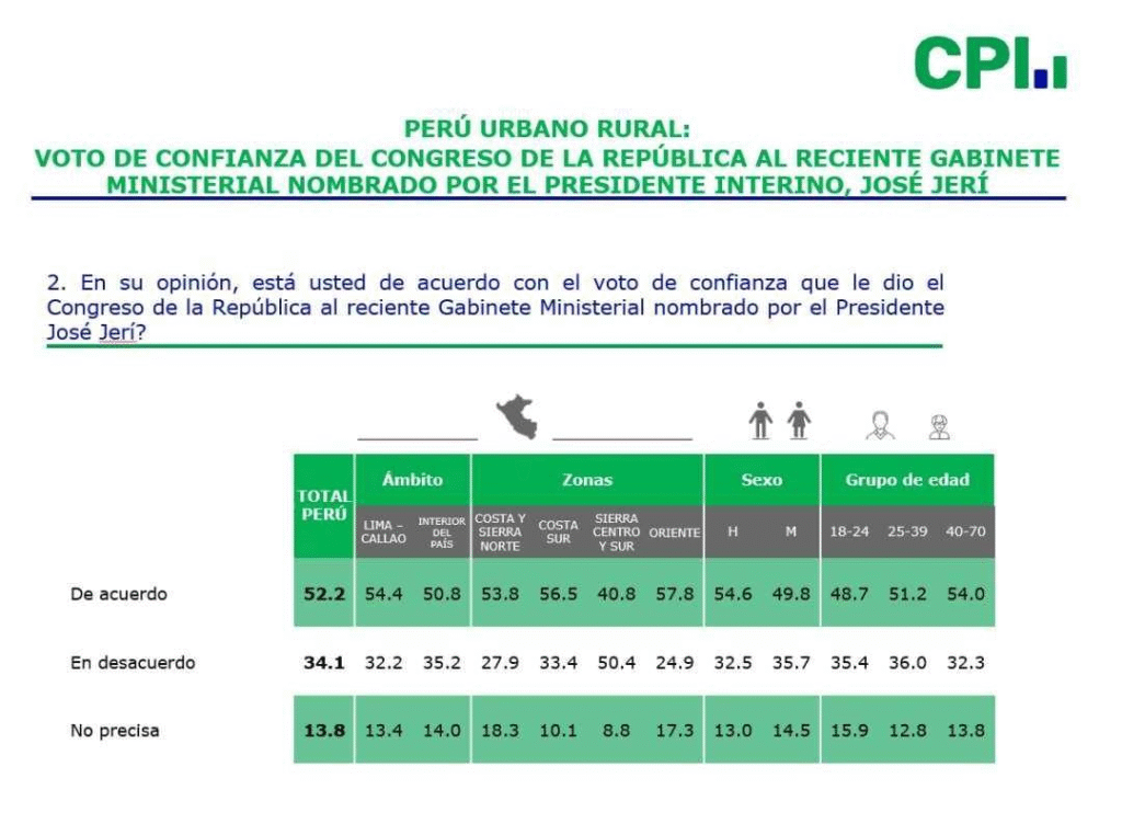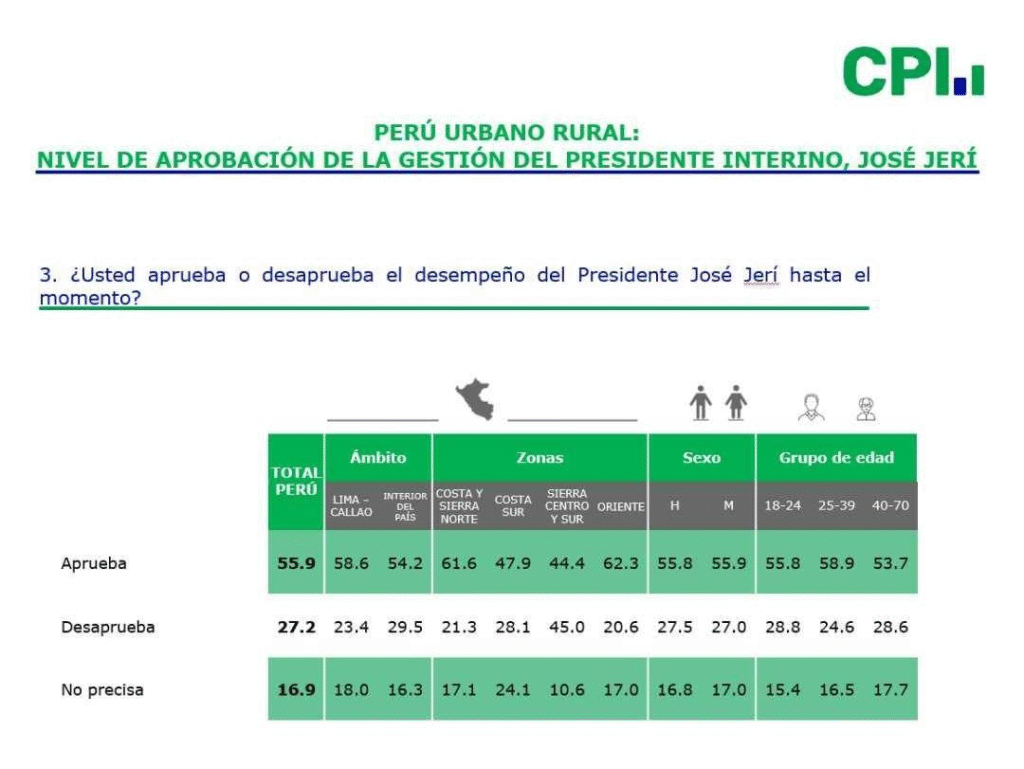 Jerí logra 55.9% según encuesta de CPI