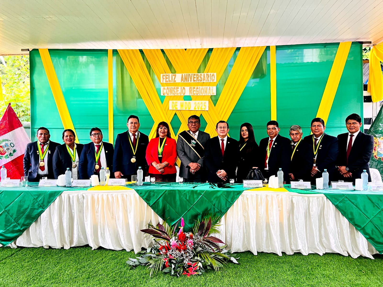 La sesión solemne realizada esta mañana en el Embarcadero Turístico, contó con la presencia del congresista local Eduardo Salhuana Cavides y autoridades políticas, militares, policiales, religiosas y de las comunidades de Madre de Dios.