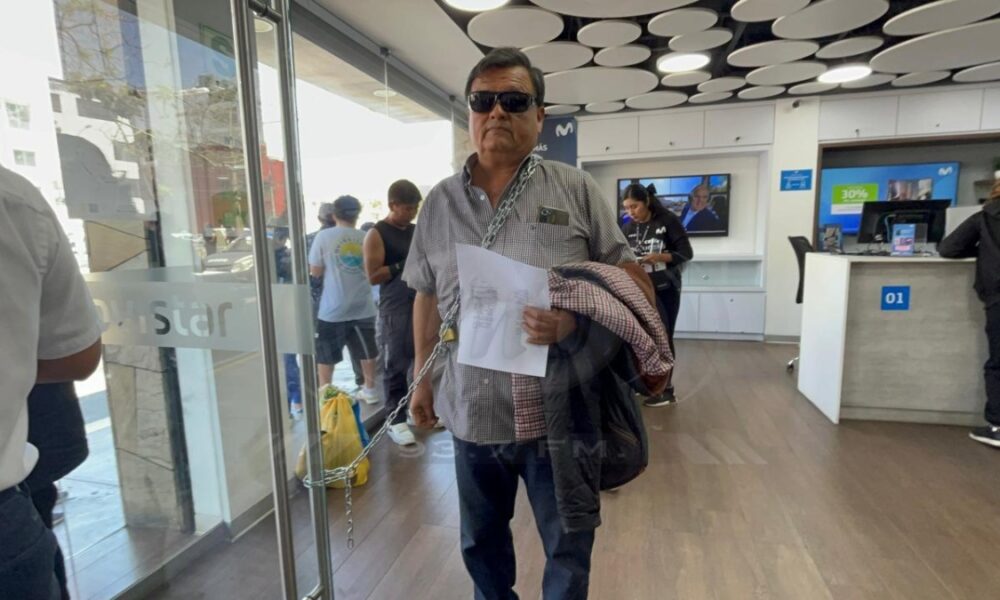 Al grado de la desesperación llegó un empresario tacneño que se encadenó en la puerta de ingreso de una de las oficinas de Movistar en la...